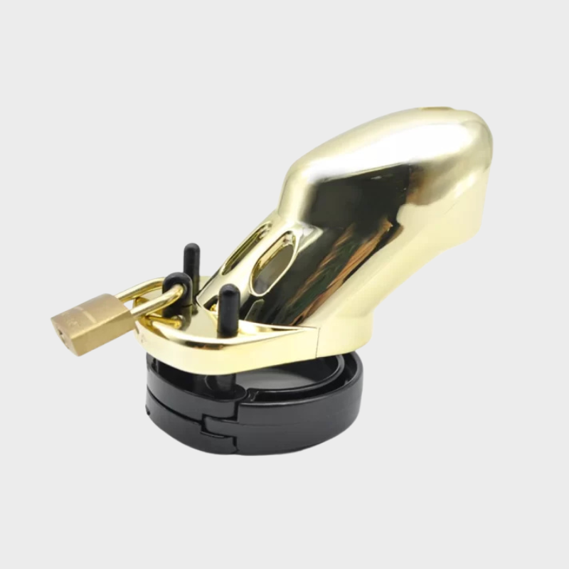 金色のプラスチック製貞操帯で、貞操が芸術作品となる世界を受け入れましょう。この装置は、単なる支配の道具ではなく、献身の象徴でもあり、禁欲の瞬間をスタイリッシュな表現へと変えます。