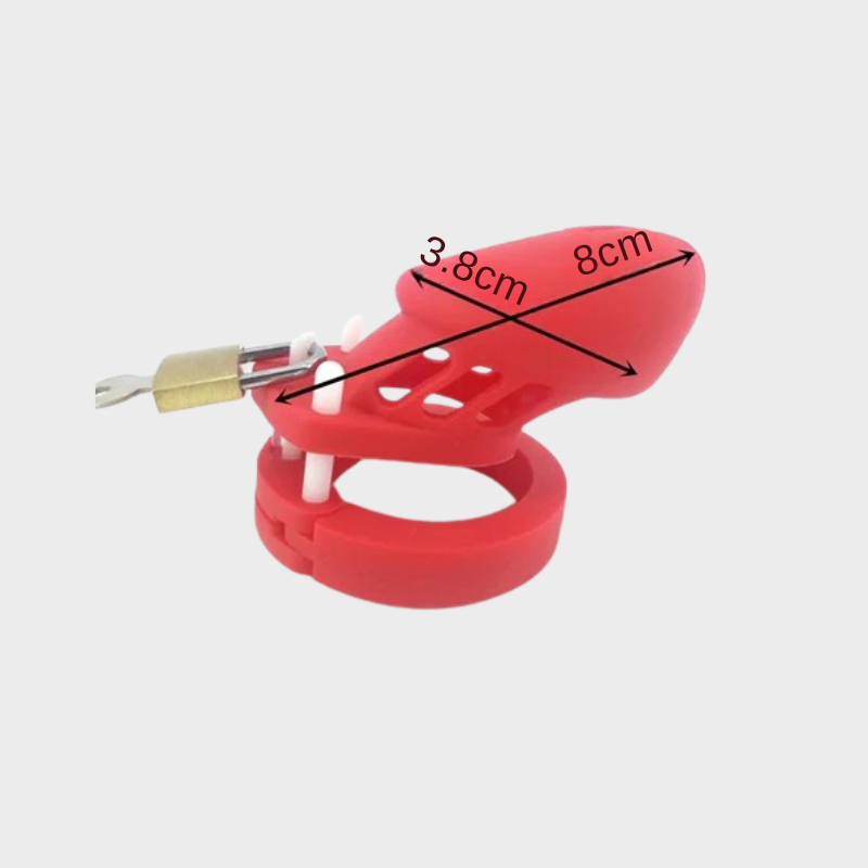 赤いシリコン製貞操帯で、これまでにないBDSM体験の核心に飛び込みましょう。抑制の喜びと拒否のエロティシズムを発見するために欠かせないこのアクセサリーは、魅惑的な美しさと妥協のない快適さを巧みに融合しています。