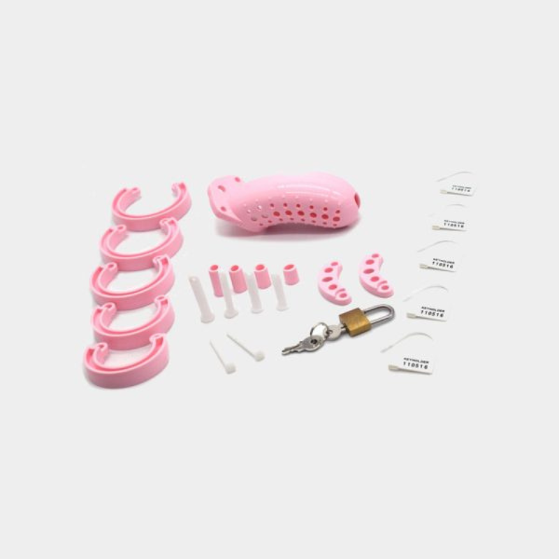 ピンク丸穴貞操ケージ 付属品セット画像