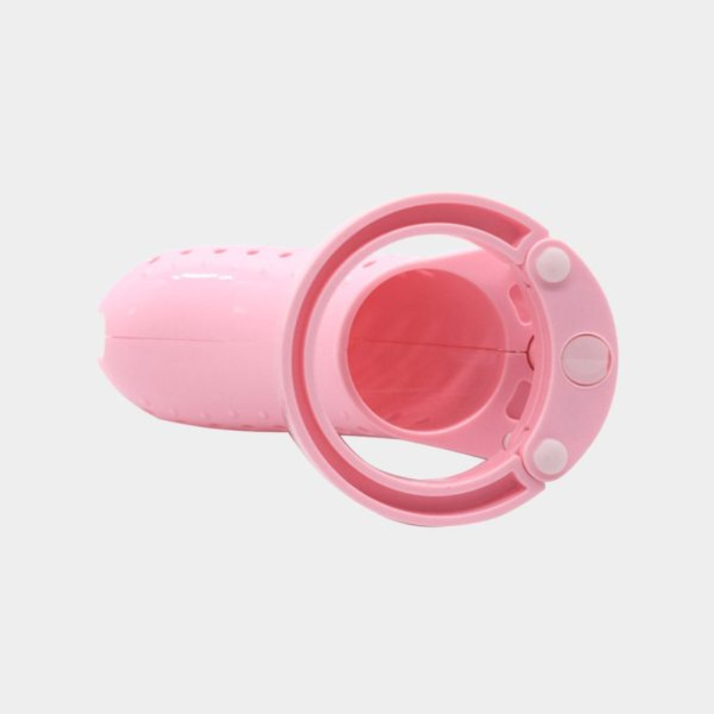 ピンク丸穴貞操ケージ 側面ビュー