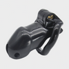 ブラック樹脂製GB3000男性用貞操ケージの正面ビュー、ロックと鍵付き