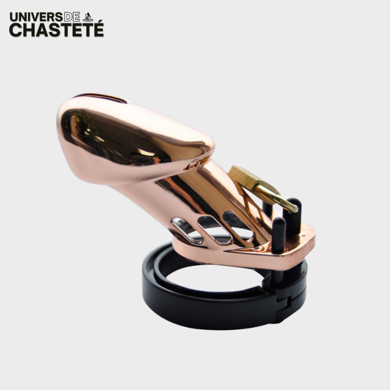 予想外の色の貞操帯がお好きなら、この貞操帯はあなたにぴったりです。その輝くブロンズ色は、あなたの夜を明るく、そしていたずらっぽい冒険へと変えます。
