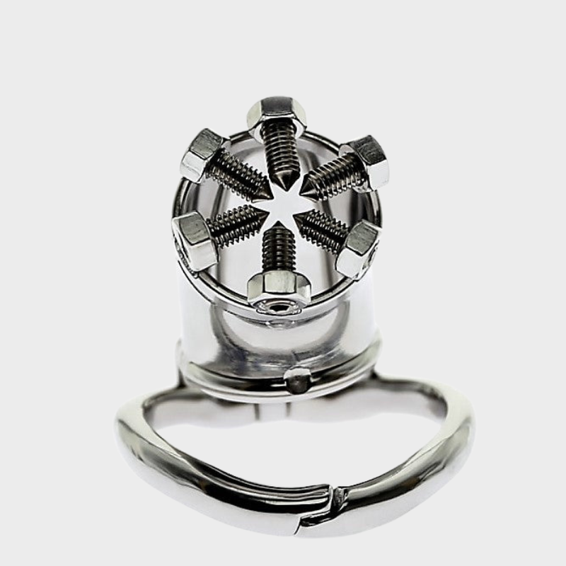 金属スパイク付き貞操帯 T200をご紹介します。これは、ボンデージと男性の貞操帯愛好家のために設計された真の傑作です。この短くて頑丈なケージは、オーガズムの否定の喜びを探求しながら、美学と絶対的な支配を兼ね備えた理想的なパートナーです。滑らかなステンレス鋼で作られており、あなたの最も深い幻想を呼び覚ますために細部に至るまで考え抜かれた、ユニークな体験をお約束します。